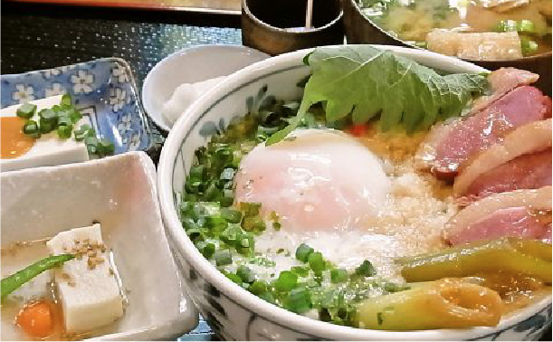 This restaurant offers a wide variety of dishes, including soba noodles, local chicken, and grated yam dishes.